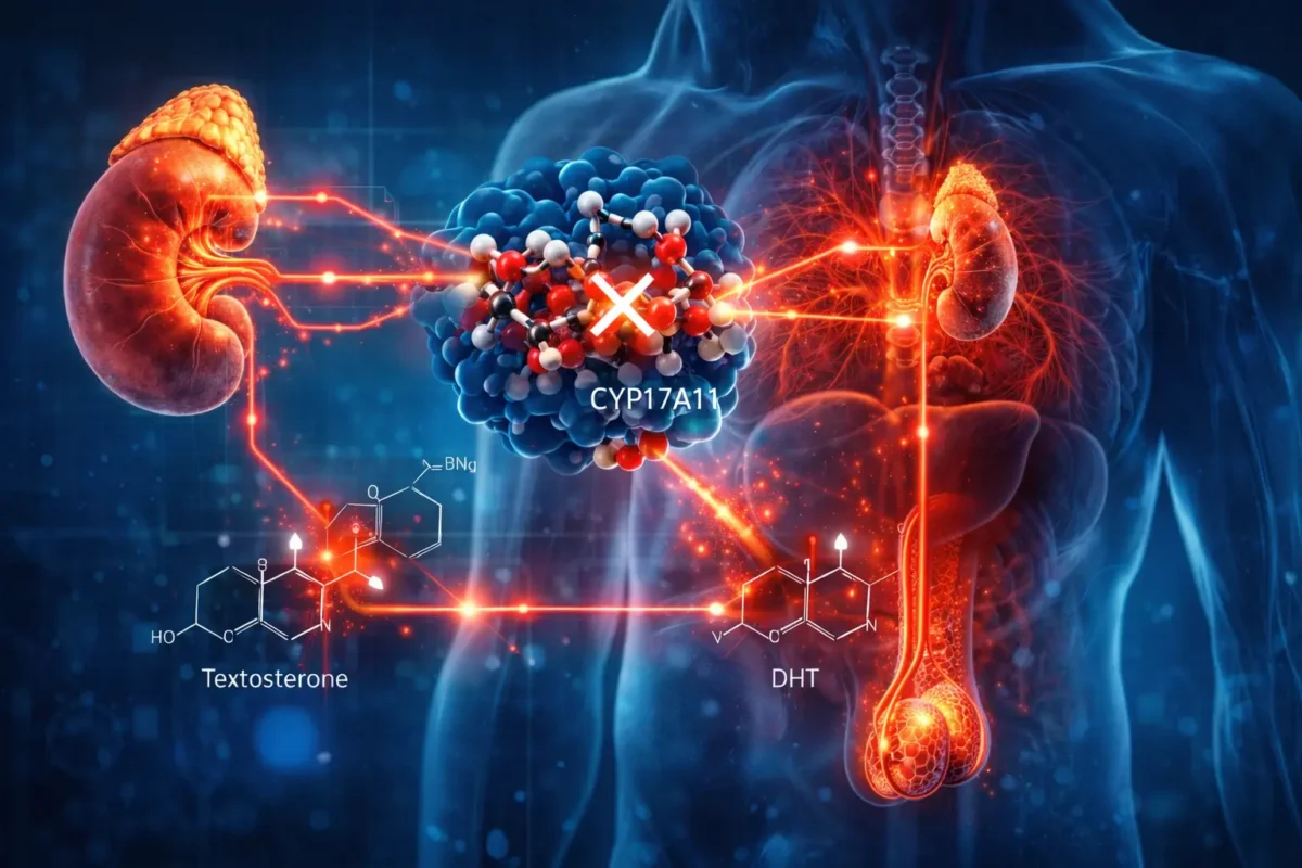 Inhibition of CYP17A1 impacts the synthesis of cortisol in addition to lowering androgen production. Adrenocorticotropic hormone (ACTH) synthesis may rise in response to decreased cortisol levels, potentially producing an excess of mineralocorticoids.